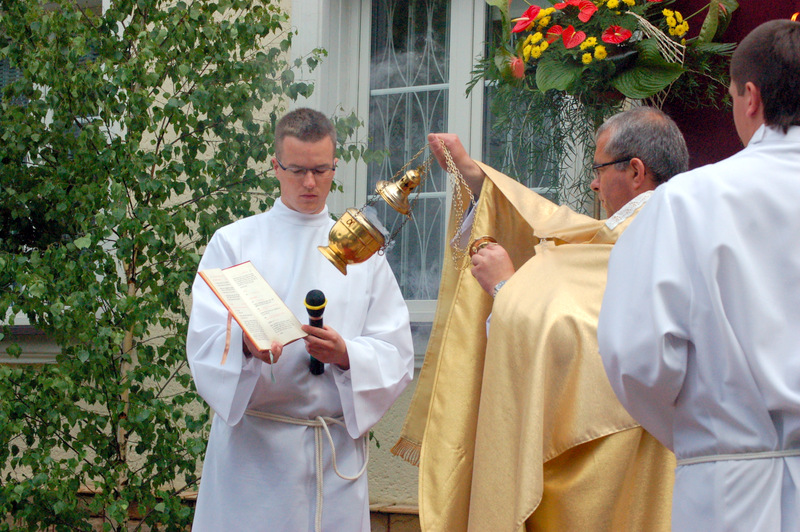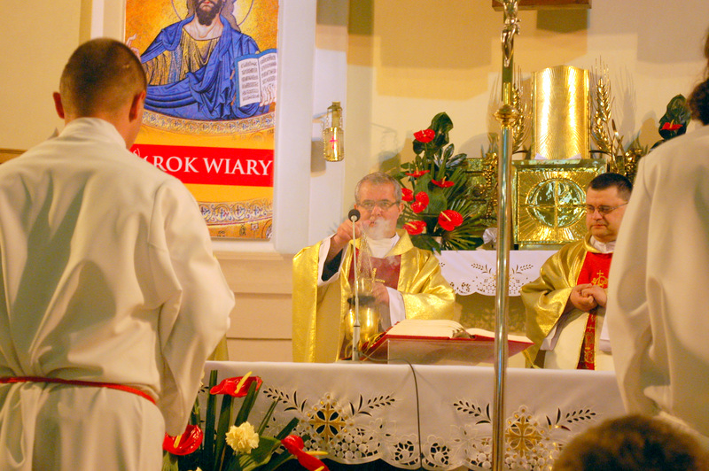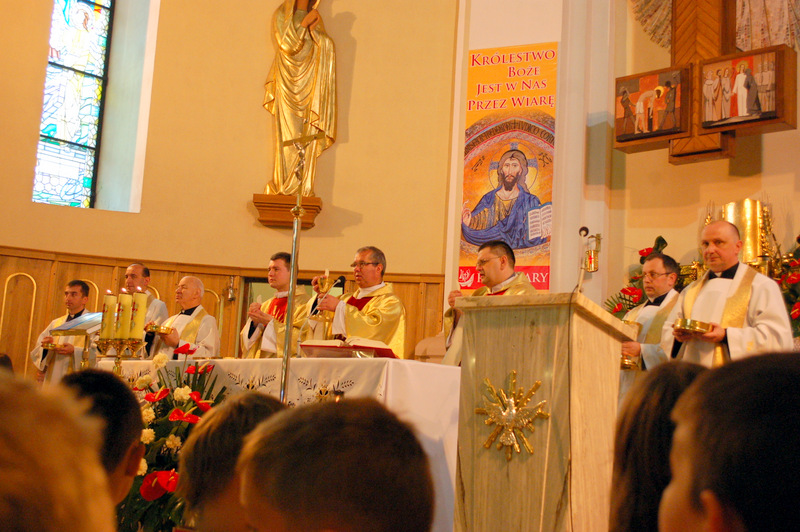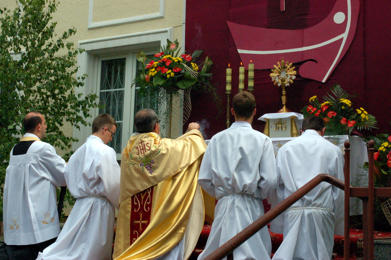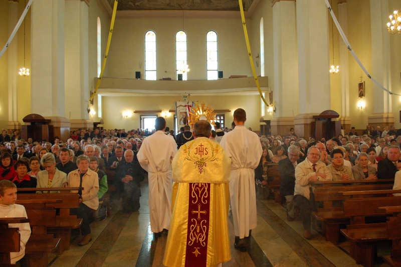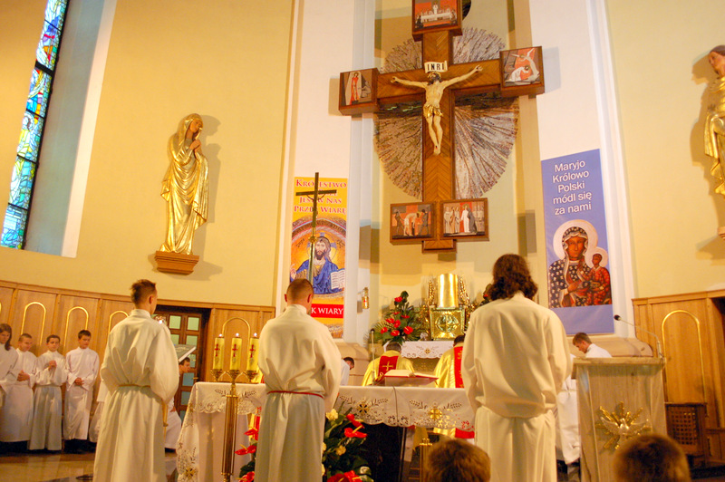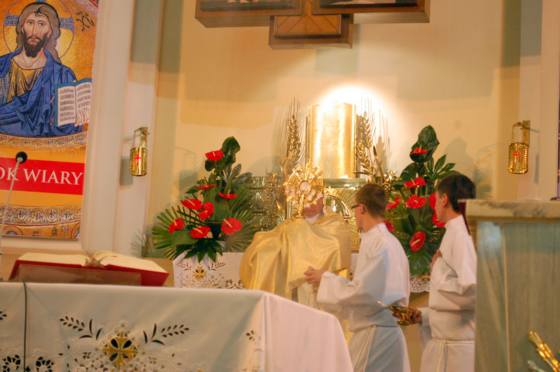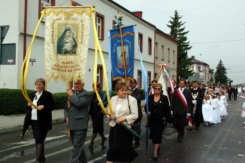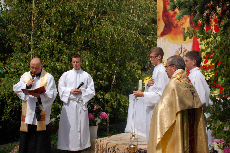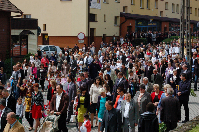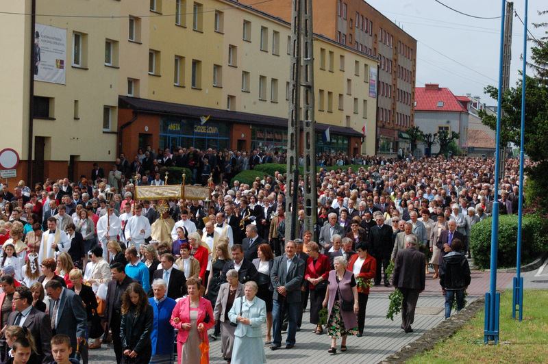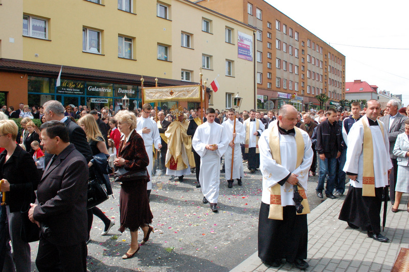 Pierwszy ołtarz został zbudowany przed głównym wejściem do budynku Urzędu Miejskiego. Wykonali go samorządowcy gminni. Drugi ołtarz przy ul. Jagiellońskiej wykonał Chór Parafialny, a trzeci Starostwo Powiatowe i Urząd Skarbowy przed swoją siedzibą. Czwarty ołtarz polowy zbudowali przedstawiciele Cechu Rzemiosł Różnych przed swoją siedzibą w Rynku. Przy każdym z ołtarzy, była czytana Ewangelia po czym następowało błogosławieństwo wiernych Najświętszym Sakramentem. Na zakończenie procesji Ks. Proboszcz Stanisław Cyran podziękował wykonawcom poszczególnych ołtarzy za wkład pracy i inwencję, a uczestnikom za pobożny udział.