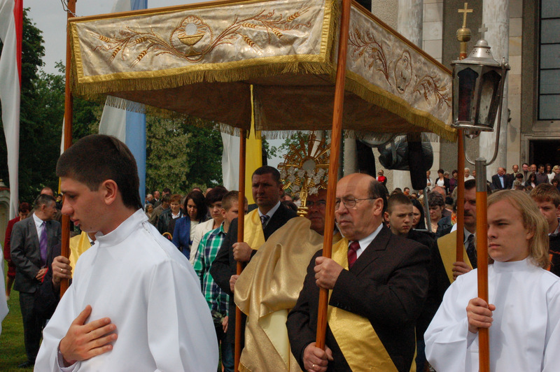 Tradycja uroczystych obchodów Bożego Ciała wiążę się z postacią bł. Julianny, siostry zakonnej z konwentu augustianek w miejscowości Mont Cornillon, niedaleko Liege żyjącej w latach (1193 - 1258). Siostra Julianna miała widzenia białej hostii poplamionej krwią. Uznając te objawienia biskup Robert z Thourotte ustanowił w 1246 r. specjalną uroczystość dla diecezji Liegie. Już w 1264 r. papież Urban IV bullą zatytułowaną Transiturus chciał objąć tą uroczystością dla cały Kościół. Rok wcześniej w Bolsenie miało miejsce niezwykłe wydarzenie, które miało wpływ na decyzję papieża. Kapłan odprawiający Mszę Św. podczas przełamywania hostii zauważył na niej spływającą krew. Jednak na ustanowienie Święta Bożego Ciała trzeba było czekać kolejna dziesięciolecia, gdyż ogłoszeniu bulli Urbana IV przeszkodziła jego śmierć, uniemożliwiając tym samym wprowadzanie nowego święta. Dopiero papież Jan XXII w 1317 r. ogłosił bullę Urbana IV i sprawił, że Kościół przyjął to święto i już od wielu setek lat uroczyście je obchodzi.