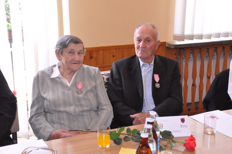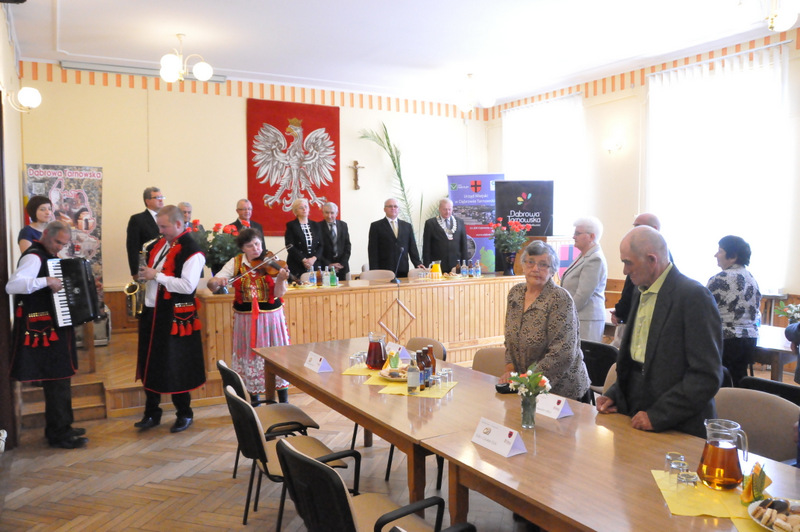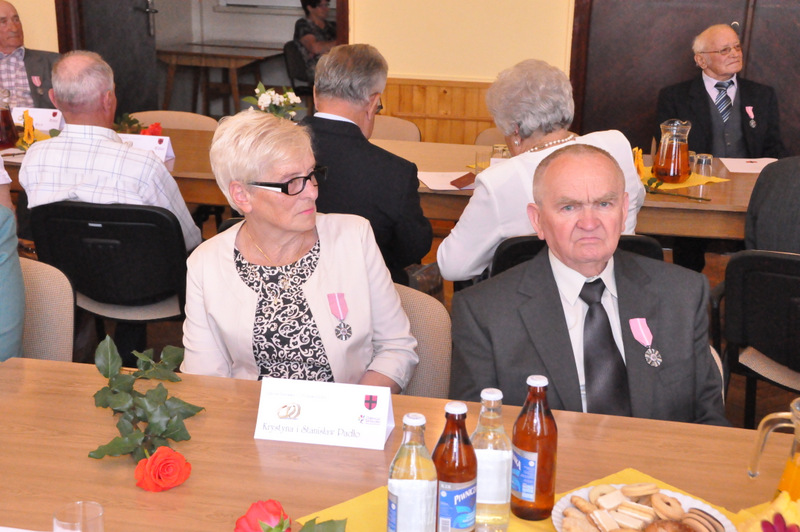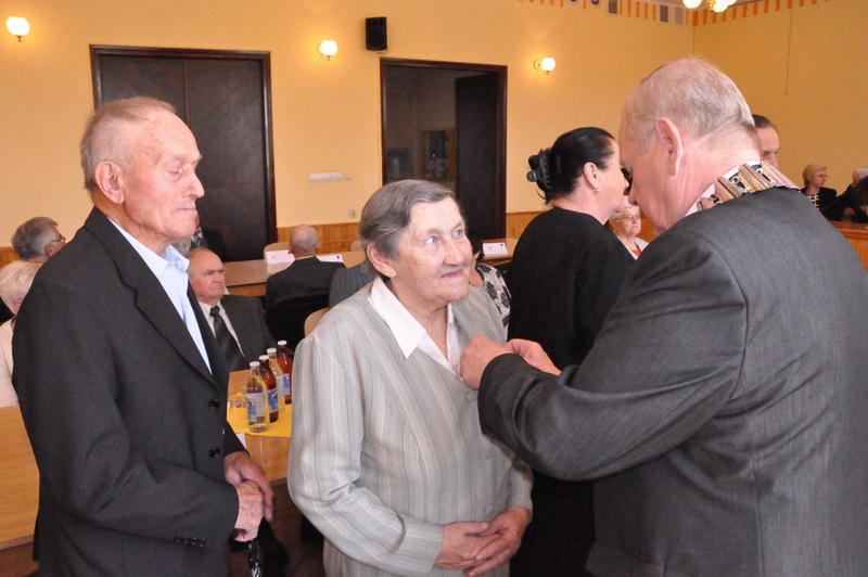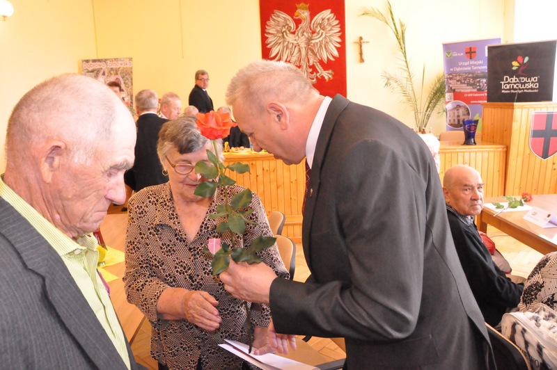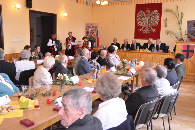 Uroczystość otworzył Burmistrz Dąbrowy Tarnowskiej Pan Stanisław Początek witając przybyłych gości, następnie Pan Burmistrz skierował do Jubilatów słowa uznania za wiele lat spędzonych wspólnie i  złożył przybyłym parom najserdeczniejsze życzenia zdrowia oraz długich lat życia. Uroczystego odznaczenia Jubilatów dokonał  Burmistrz Dąbrowy Tarnowskiej Stanisław Początek. Jubilaci otrzymali też okolicznościowy prezent ufundowany przez samorząd gminny. Do gratulacji dołączyli również: Przewodniczący Rady Miejskiej w Dąbrowie Tarnowskiej Pan Władysław Knutelski oraz Sekretarz Gminy Pan Stanisław Ryczek.W spotkaniu udział wzięli również sołtysi: Pani Józefa Taraska, Pani Bernadeta Mrówka, Pan Zdzisław Pyzik, Pan Tadeusz Krawczyk, Pan Ryszard Ciombor, Pan Czesław Podosek. W imieniu  Jubilatów głos zabrał Pan Stanisław Starzyk dziękując Panu Burmistrzowi za zorganizowanie uroczystości.Spotkanie uświetnił zespół Gruszowiacy. Ze względów zdrowotnych nie wszyscy zaproszeni mogli być obecni, natomiast Panu Stanisławowi Zielińskiemu nie dane było doczekać uroczystości, zmarł 5 maja 2014r. Zacnym Jubilatom składamy najserdeczniejsze gratulacje oraz życzenia zdrowia, pomyślności i szczęścia na dalsze lata wspólnego życia.