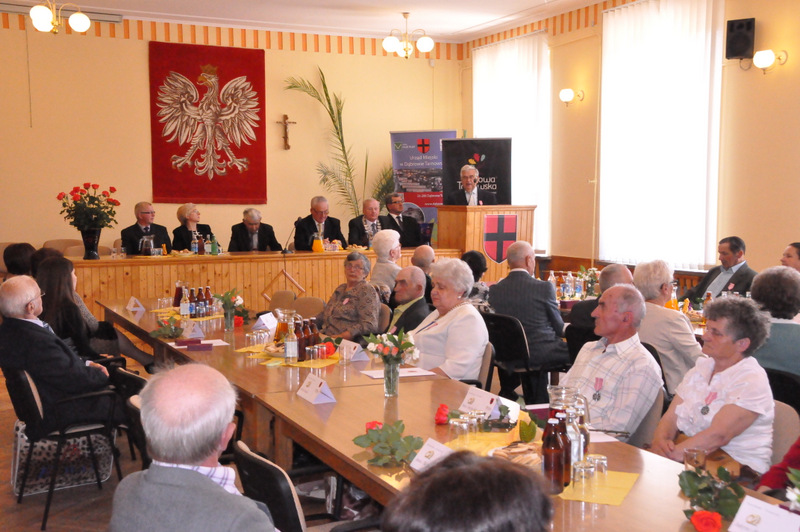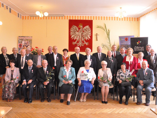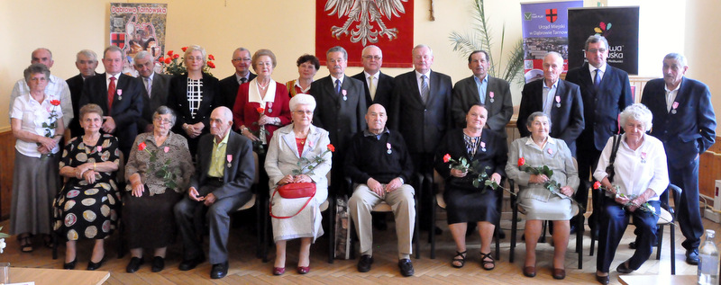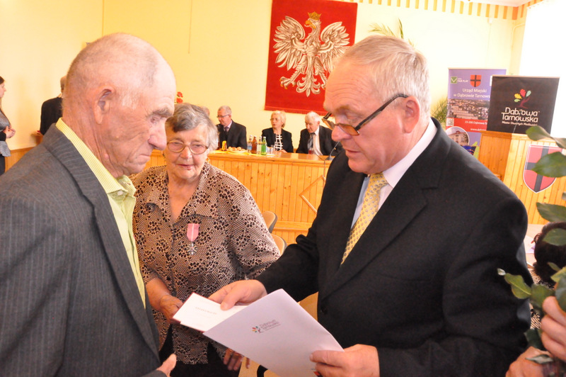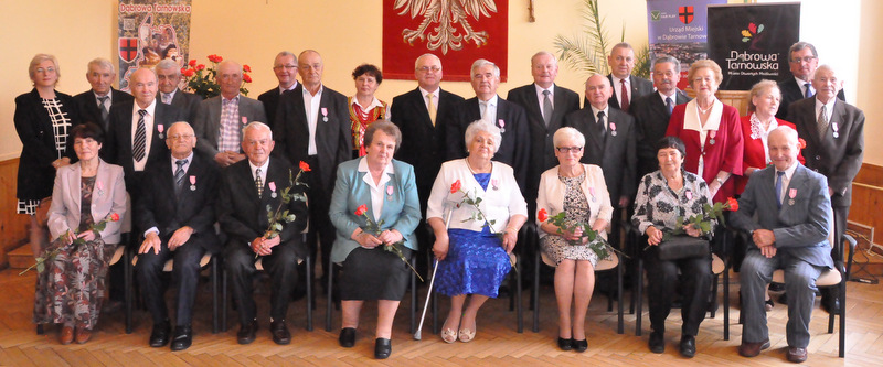 W sobotę, 7 czerwca 2014 r. w Urzędzie Miejskim w Dąbrowie Tarnowskiej odbyło się uroczyste spotkanie par małżeńskich, które zawarły związek małżeński w 1963 r. lub wcześniej. Podczas uroczystości Jubilaci otrzymali odznaczenia "Medal za Długoletnie Pożycie Małżeńskie" oraz legitymacje. Medal za Długoletnie Pożycie Małżeńskie to polskie odznaczenie państwowe ustanowione jako nagroda dla osób, które przeżyły co najmniej 50 lat w jednym związku małżeńskim. Odznaczenie co roku przyznawane jest przez Prezydenta RP, a wręczane przez Wójtów, Burmistrzów i Prezydentów miast i gmin w całej Polsce. W tym roku Medal otrzymało 24 pary małżeńskie z terenu  gminy Dąbrowa Tarnowska. Wśród Jubilatów uhonorowanych Medalami, którzy ponad pół wieku temu  stanęli na ślubnym kobiercu znalazło się również 3 pary małżeńskie, które zawierały związek małżeński ponad 60 lat temu: