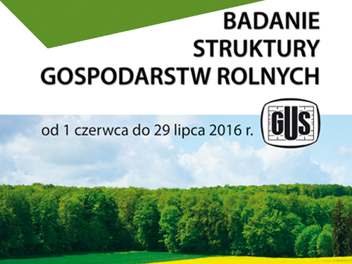 Urząd Statystyczny w Krakowie informuję, iż w dniach od 1 czerwca do 29 lipca 2016 r. w wylosowanych gospodarstwach rolnych w całej Polsce zostanie przeprowadzone badanie struktury gospodarstw rolnych (R-SGR). Badanie realizowane jest przy pomocy ankieterów statystycznych, którzy w tych dniach odwiedzą wylosowane gospodarstwa rolne z obszaru województwa małopolskiego. Każdy ankieter będzie posiadał legitymację służbową, upoważnienie do prowadzenia badan oraz wyposażony jest w tablet. Tożsamość osób wykonujących pracę ankieterów potwierdzić można na specjalnie przygotowanej Infolinii Statystycznej pod numerem telefonu 22 2799999. Infolinia będzie czynna w dniach 1 czerwca - 29 lipca br. w godz. 8:00-20:00.