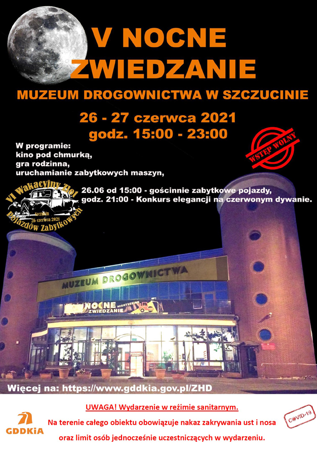 Wszyscy fani drogownictwa i motoryzacji powinni zapamiętać daty 26 i 27 czerwca. W tych dniach w Muzeum Drogownictwa w Szczucinie (leżącym przy granicy województw świętokrzyskiego i małopolskiego) odbędzie się piąta edycja Nocnego Zwiedzania. Udział w wydarzeniu jest bezpłatny, a ekspozycja jest przystosowana do zwiedzania przez osoby z niepełnosprawnością ruchową. W związku z epidemią COVID-19 wydarzenie organizowane jest w reżimie sanitarnym. Na terenie całego obiektu obowiązuje nakaz zakrywania ust i nosa oraz limit osób.