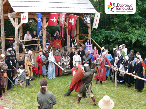 Na szczęście nikt z gości trwale nie ucierpiał,  a powóz jeden, na który konar ogromny upadł nawet uszczerbku na lakierze nie doznał.  Najbardziej przemoczonych  litościwy grododzierżca Wojciech z Bagien na nocleg pod dach swej Wieżycy przyjął.  Dnia następnego zaś pielgrzymkę do kaplicy pobliskiej sam poprowadził  w intencji podziękowania za Boską opiekę nad przybyłymi i gospodarzami. Te wypadki znamienne tylko potwierdziły palącą konieczność interwencji Inkwizytora.  Wiemy, że spis wszystkich donosów szczęśliwie ocalał i wykorzystany będzie jako materiał dowodowy podczas procesu przeniesionego na miesiąc jesienny jakowyś. Tym razem jednak do zaproszonych gości kruki z wieścią wyślemy, by zło dnia tego nie znało i pułapek na przedstawicieli Boskiej sprawiedliwości nie zastawiało. Aby igrce zapewnić pielgrzymom z dzielnic bliskich i odległych przybyłym na proces niedoszły, grododzierżca jadło i napitki rozdać kazał,  kramy rzemieślnicze ustawić a i barda Roderyka z grajkami z dalekiego grodu Wrocławia ku uciesze tłumu zaprosił. Zaś w potyczkach  turniejowych takie oto wyniki ustanowiono: w pojedynkach samojeden najwaleczniejsi byli rycerze - Kotu z Tarnowa, Quaipeda z Warszawy i Piotr z Będzina;  w walkach samopiąt - Minetaury, Ciężka Dwójka i Templariusze;  najcelniejsi łucznicy to: Damian, Jeżyk i Pawfcio, zaś w biegu dam najzręczniejsze się okazały Evelina z Żor, Patrycja z Oświęcimia i Oliwia z Tarnowa.