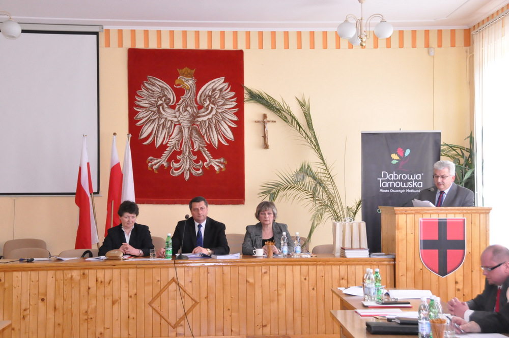 W czwartek 7 maja 2015 r. w godzinach popołudniowych odbyła się VII sesja Rady Miejskiej w Dąbrowie Tarnowskiej. Była to sesja nadzwyczajna zwołana w związku z koniecznością podjęcia uchwały w sprawie przyjęcia Programu osłonowego Gminy Dąbrowa Tarnowska w zakresie wsparcia dla rodzin wielodzietnych w ramach projektu „Pierwszy dzwonek” polegającego na przyznaniu dotacji dla gmin na udzielenie wsparcia na rok szkolny 2015/2016 dla uczniów z rodzin wielodzietnych 3+ z Województwa Małopolskiego z uwagi na nabór wniosków o dotację dla Gmin w terminie do dnia 20 maja br. Obrady prowadził Jacek Sarat – Przewodniczący Rady Miejskiej w Dąbrowie Tarnowskiej. Po przyjęciu porządku obrad i protokołu z ostatniej sesji Burmistrz Dąbrowy Tarnowskiej Krzysztof Kaczmarski zapoznał radnych ze sprawozdaniem z działalności międzysesyjnej.