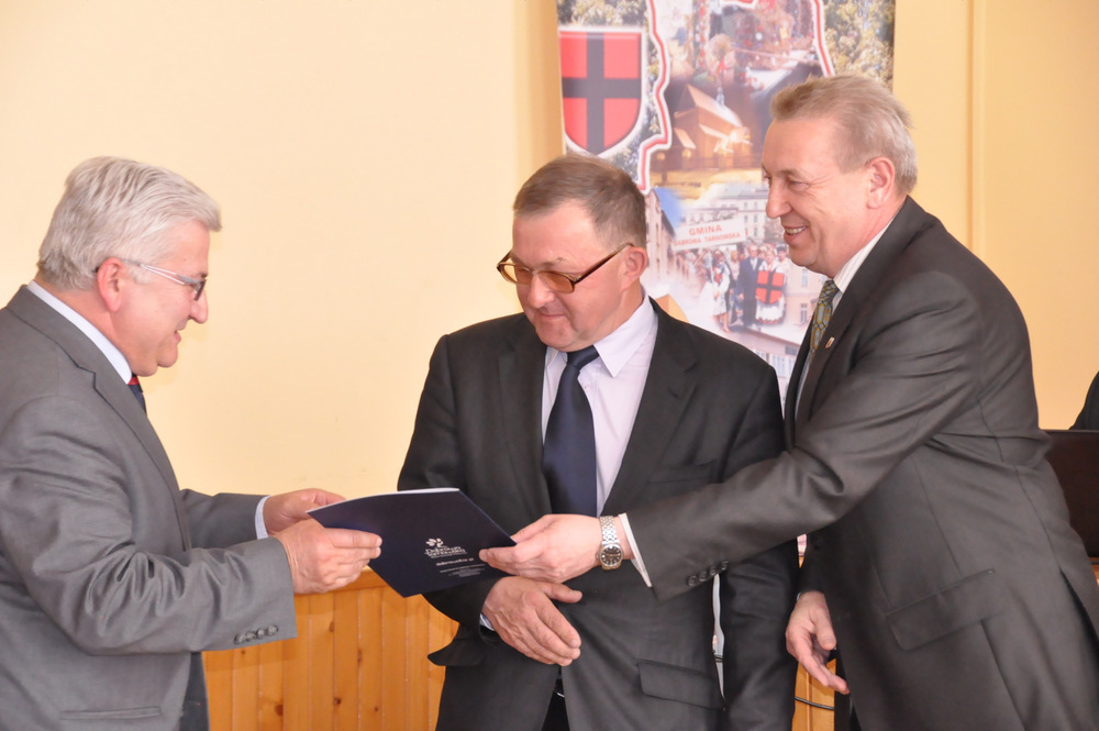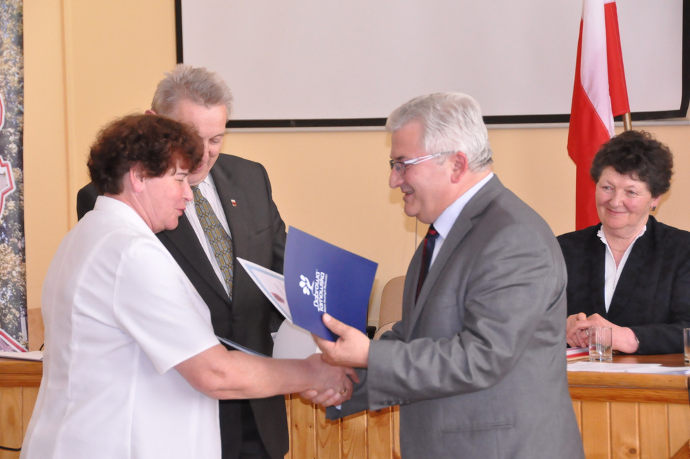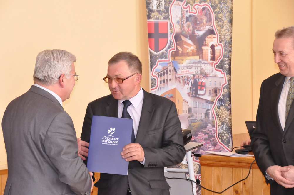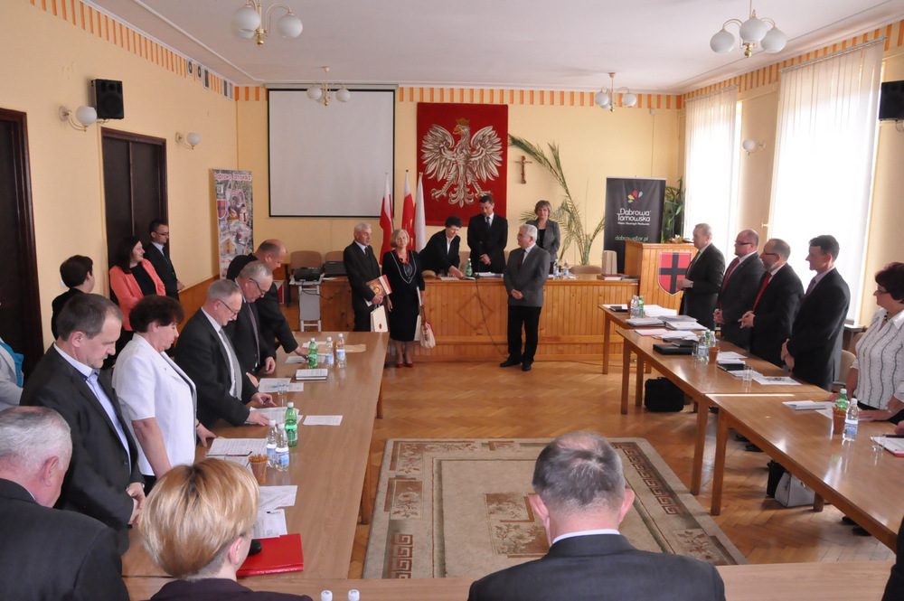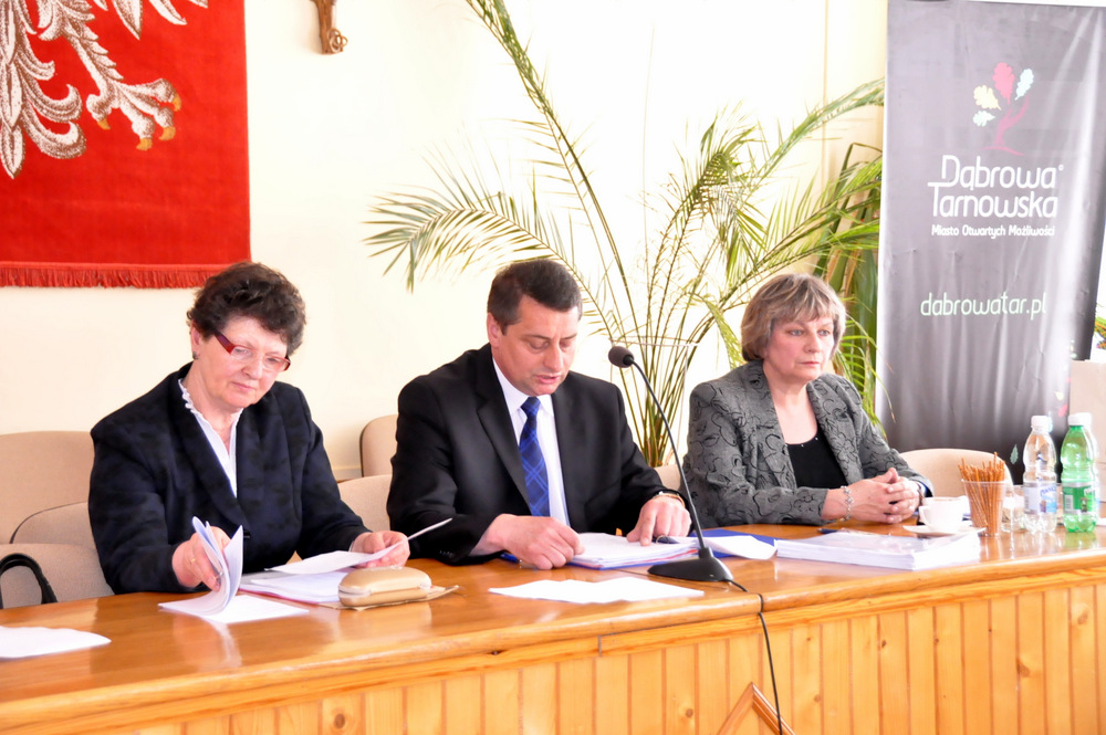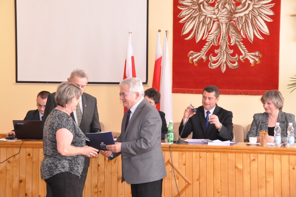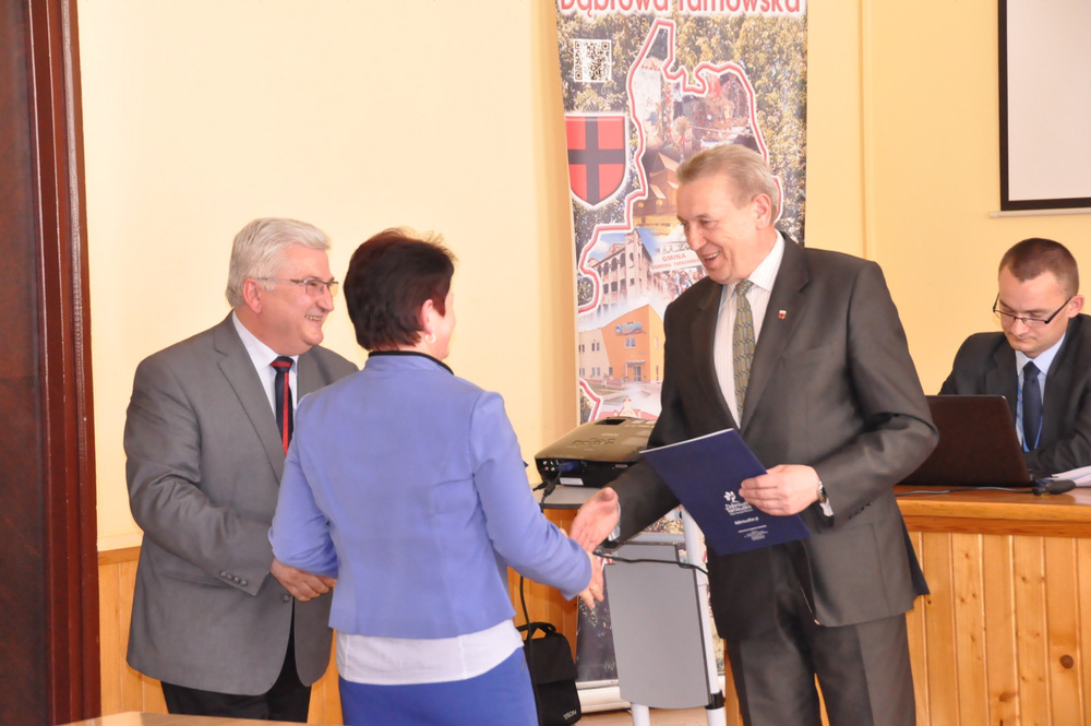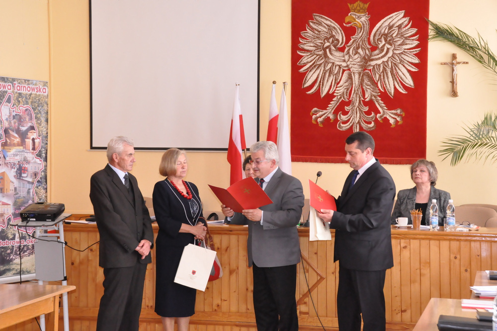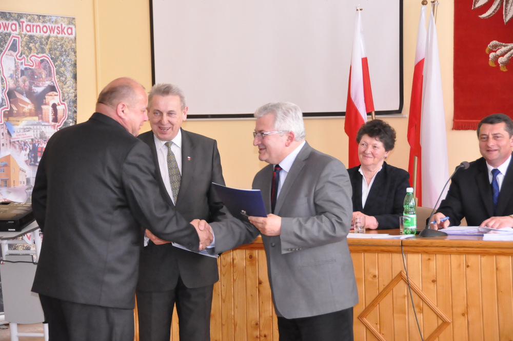 Następnie Burmistrz wraz z radnymi podziękowali sołtysom, którzy nie zostali wybrani na najbliższą kadencję tj. Pani Józefie Borowskiej – Marciniak, Zofii Świerczek, Janowi Sojce oraz Zdzisławowi Pyzikowi za oddaną i długoletnią pracę na rzecz lokalnej społeczności. W imieniu dchodzących sołtysów wystąpiła Pani Józefa Borowska –Marciniak, która podziękowała wszystkim za wieloletnią współpracę. Stanisław Ryczek jako Przewodniczący Miejskiej Komisji Wyborczej wręczył zaświadczenia nowo wybranym sołtysom, informując jednocześnie zebranych, że na kadencję 2015-2019 sołtysami sołectw Gminy Dąbrowa Tarnowska zostali: 1) Pan Stanisław Król - sołtys sołectwa Brnik, 2) Pani Barbara Chmiel – sołtys sołectwa Gruszów Mały, 3) Pani Józefa Taraska – sołtys sołectwa Gruszów Wielki, 4) Pan Jacek Świątek - sołtys sołectwa Laskówka Chorąska, 5) Pan Tadeusz Krawczyk – sołtys sołectwa Lipiny, 6) Pani Bernadeta Mrówka - sołtys sołectwa Morzychna, 7) Pan Czesław Podosek – sołtys sołectwa Nieczajna Dolna, 8) Pan Jan Bąba – sołtys sołectwa Nieczajna Górna, 9) Pan Ryszard Ciombor – sołtys sołectwa Smęgorzów, 10) Pani Halina Gąciarz - sołtys sołectwa Sutków, 11) Pani Marta Mędala - sołtys sołectwa Szarwark, 12) Pan Kazimierz Pinas – sołtys sołectwa Żelazówka.Na tej sesji radni przyjęli uchwałę w sprawie przyjęcia Programu osłonowego Gminy Dąbrowa Tarnowska w zakresie wsparcia dla rodzin wielodzietnych w ramach projektu „Pierwszy dzwonek” polegającego na przyznaniu dotacji dla gmin na udzielenie wsparcia na rok szkolny 2015/2016 dla uczniów z rodzin wielodzietnych 3+ z województwa małopolskiego. Radni przyjęli ocenę zasobów pomocy społecznej za rok 2014 dla Gminy Dąbrowa Tarnowska. Rada przyjęła sprawozdanie z realizacji programu współpracy Gminy Dąbrowa Tarnowska z organizacjami pozarządowymi oraz innymi podmiotami prowadzącymi działalność pożytku publicznego za rok 2014.