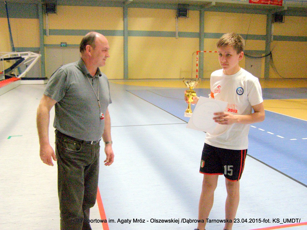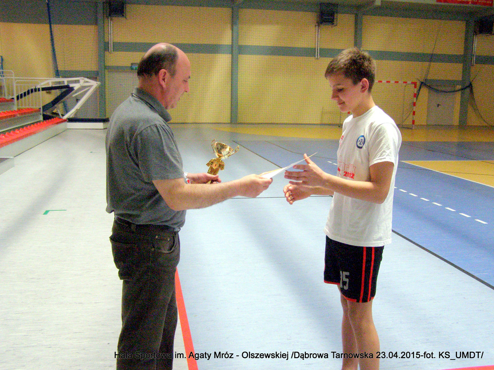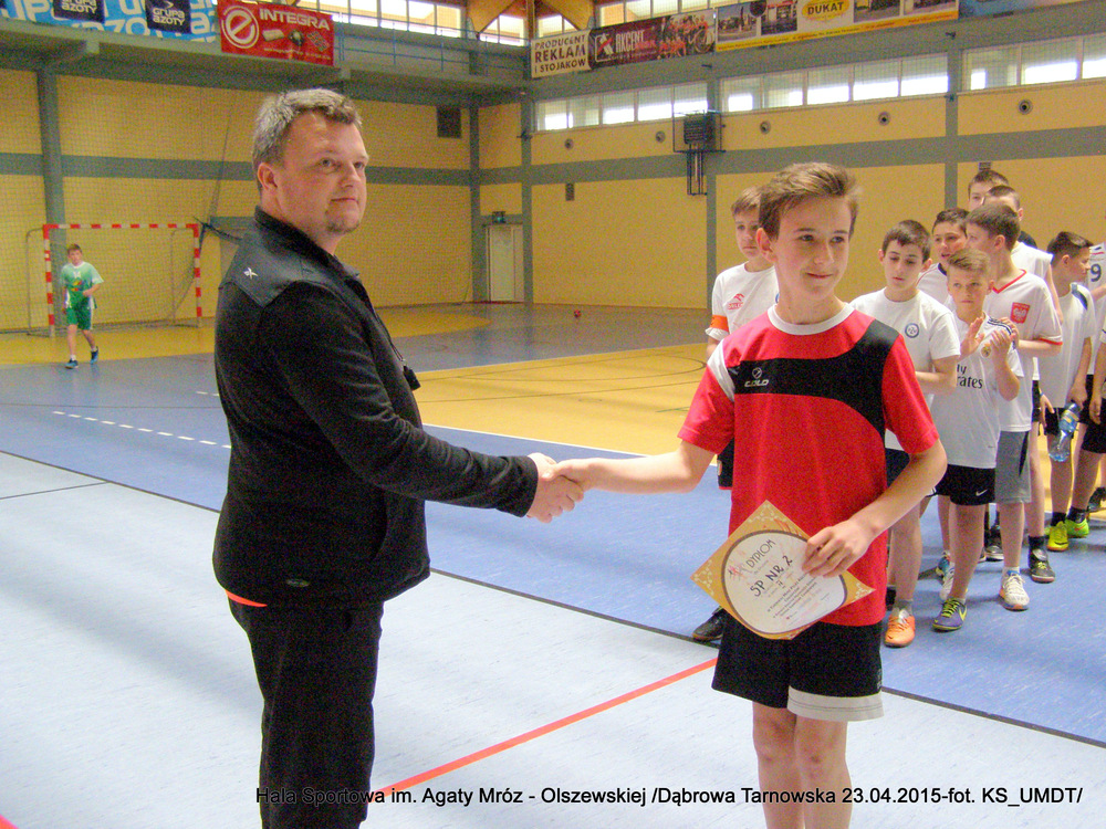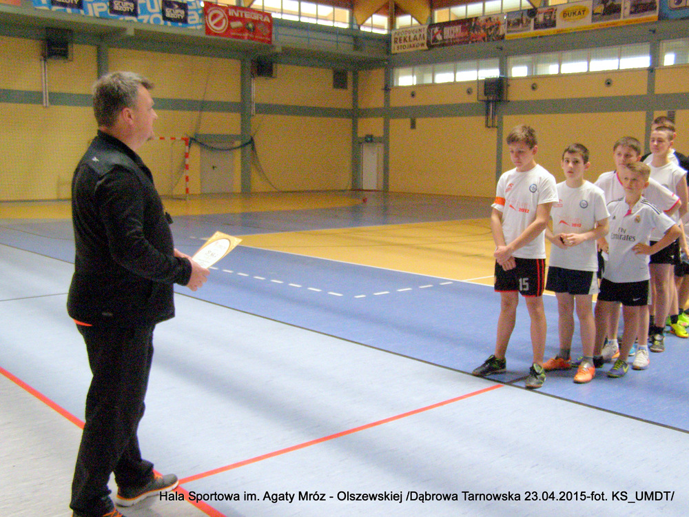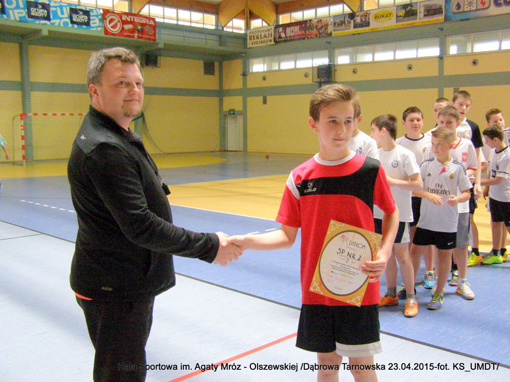 Klasyfikacja końcowa:I miejsce – Szkoła Podstawowa Nr 1 Dąbrowa Tarnowska, w składzie: Kotwa Jakub, Skrzyniarz Krystian, Bogula Krystian, Moździerz Karol, Grabka Adrian, Cygan Jakub, Kijak Eryk, Kędzierski Michał, Kotfiła Sebastian, Górczak Mateusz, Nowak Aleksander, Myca Kamil, Szwancenberg Grzegorz, Pyzik Patryk. II miejsce – Szkoła Podstawowa Nr 2 Dąbrowa Tarnowska, w składzie: Burzec Hubert, Klimowski Kacper, Potoczny Patryk, Toczek Michał, Barnaś Szymon, Bezak Sebastian, Lustofin Bartosz, Szmyrko Wojciech, Gawiński Jakub. III miejsce – Szkoła Podstawowa Nieczajna Górna, w składzie: Bartoń Patryk, Zieliński Sebastian, Kijak Kacper, Wybraniec Mateusz, Wójcik Mateusz, Chmura Daniel, Świerczek Jakub, Foszcz Witold.