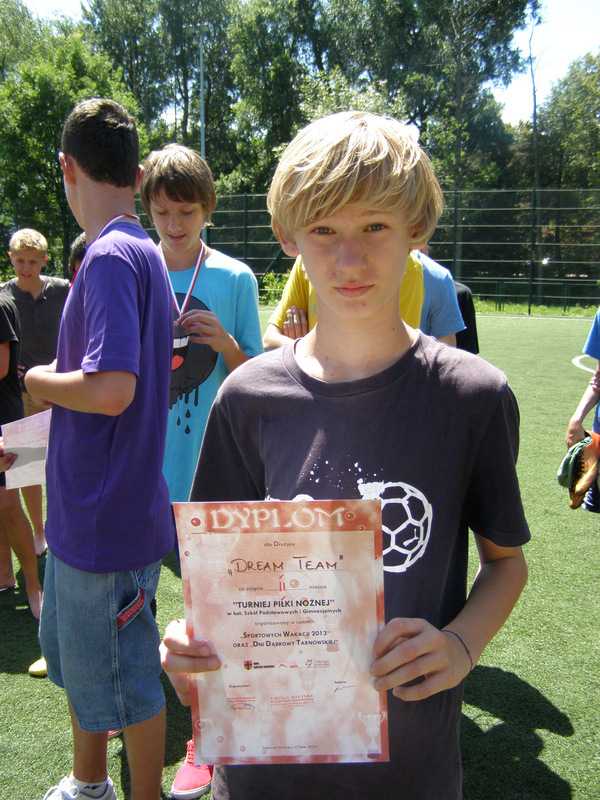 Turniej piłki nożnej który miał miejsce 17 lipca o godzinie 10.00 na obiekcie sportowym „ ORLIK 2012” został przeprowadzony w blasku słonecznej pogody. Do współzawodnictwa stanęły drużyny reprezentujące szkoły podstawowe i gimnazjalne w ramach projektu ‘SPORTWE WAKACJE 2012”oraz „ DNI DĄBROWY”. Frekwencja spotkania przerosła nasze najśmielsze oczekiwania, do rywalizacji zgłosiło się aż 7 drużyn. Spotkanie sędziowali Jan Pisarski oraz Michał Aksamit. Mecze odbyły się systemem w grupach, obowiązywał czas gry 1 x 10minut.