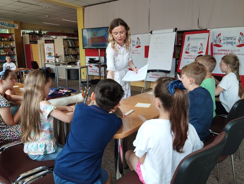 We wtorek 11 lipca br. odbyły się kolejne zajęcia w ramach realizacji przez Miejską Bibliotekę Publiczną im. Marii Kozaczkowej w Dąbrowie Tarnowskiej zadania „Symbole na start – Niepodległość na mecie!”. Następnym elementem tego wydarzenia były bezpłatne warsztaty literackie pod hasłem „Symbole w literaturze na start” przeprowadzone przez Justynę Bociek – polonistkę i miłośniczkę teatru.