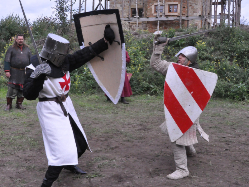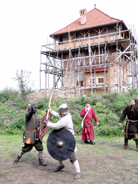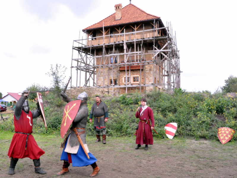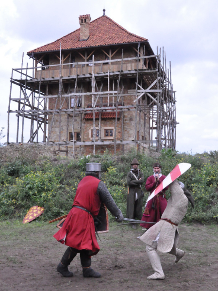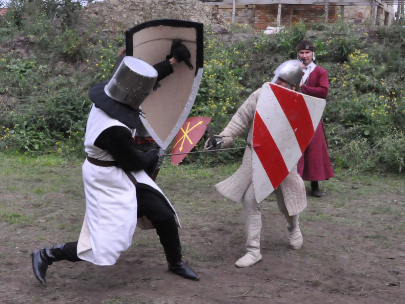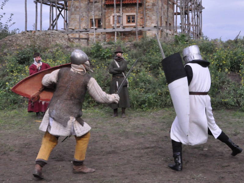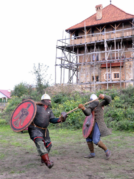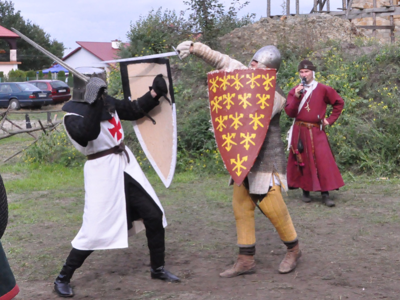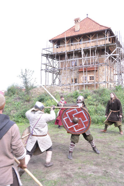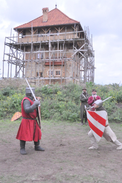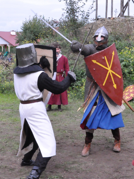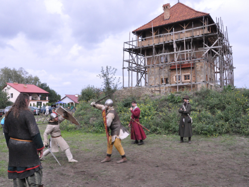 Już piąty raz w tym roku Poczet Bagiennych z Wieżycy przy współpracy z zaprzyjaźnionymi grupami rekonstrukcji historycznej zorganizował spotkanie z historią. Tym razem spotkanie odbyło się pod szyldem pierwszego turnieju rycerskiego dla zwolenników wczesnego i dojrzałego średniowiecza. Zjechali się na miejsce przedstawiciele kilku zaprzyjaźnionych ze sobą grup rekonstruktorów: między innymi byli to Woje Peruna i Tarnowskie Bractwo Rycerskie Gladii Amici od lat współpracujące z projektem Wojtka Maniaka oraz przyjaciele z Grodu Horodna, Czarnego Sokoła i kilka pojedynczych osób z innych grup. Gwoździem programu były turniejowe potyczki w szrankach jeden na jednego oddzielne dla wczesnych i trzynastego wieku. Odbył się również turniej umiejętności łuczniczych. Wojownicy walczyli pod okiem sędziów o wspaniałe nagrody: miecze bojowe wykonane przez jednego ze sławniejszych w Polsce mieczników oraz łuk refleksyjny. Turniej Rycerski pod Wieżycą był oficjalną imprezą towarzysząca Turniejowi w Dębnie, który odbywa się dzień później. Dzięki uprzejmości referatów: Promocji i Sportu Urzędu Miejskiego w Dąbrowie Tarnowskiej impreza miała profesjonalne nagłośnienie. Już od jedenastej rano powitano na miejscu liczną wycieczkę uczniów ze Szkoły Podstawowej nr 2 z Dąbrowy Tarnowskiej. Lekcję żywej historii na miejscu wycieczce zapewnił pan Sławomir Bator, który jest nauczycielem z tejże szkoły i jednym z organizatorów tego spotkania oraz Wojciech Maniak, właściciel budowli i pomysłodawca całej akcji. Dzieci mogły wziąć udział w swoistym turnieju rycerskim pod doświadczonym okiem p. Batora i p. Sebastiana Habla, którzy są doświadczonymi już odtwórcami historycznymi. Potem, tak jak inni goście tego dnia, dzieci mogły obejrzeć z bliska samą wieżę, wysłuchać historii jej powstania, zobaczyć prawdziwe obozowisko rycerskie, skosztować wytworów kuchni obozowej wykonanych zgodnie z recepturami średniowiecznymi i podziwiać walki kilkudziesięciu wojowników w szrankach turniejowych. A walki mogły zadziwić niejednego. Walczący nie dawali pokazów; oni po prostu naprawdę bili się po to, żeby wygrać. Iskry szły z często krzyżowanych głowni mieczy i żeleźców toporów a drzazgi obficie sypały się z drewnianych tarcz. Sędziowie pod przewodnictwem p. Sławomira Batora wyłonili ostatecznie zwycięzców. Nagrodę za Pierwsze miejsce w turnieju bojowym dla przedstawicieli wczesnego średniowiecza odebrał Lubomir Aleksandrowicz z Drużyny Wojów Grodu Horodna, natomiast turniej rycerski zwyciężył Michał Lipiński z Tarnowskiego Bractwa Rycerskiego Gladii Amici. Zwycięzcom gratulujemy i mamy nadzieję, że mieszkańcy naszej gminy będą mieli okazję co roku oglądać takie widowiska..