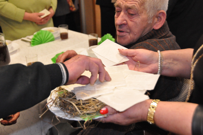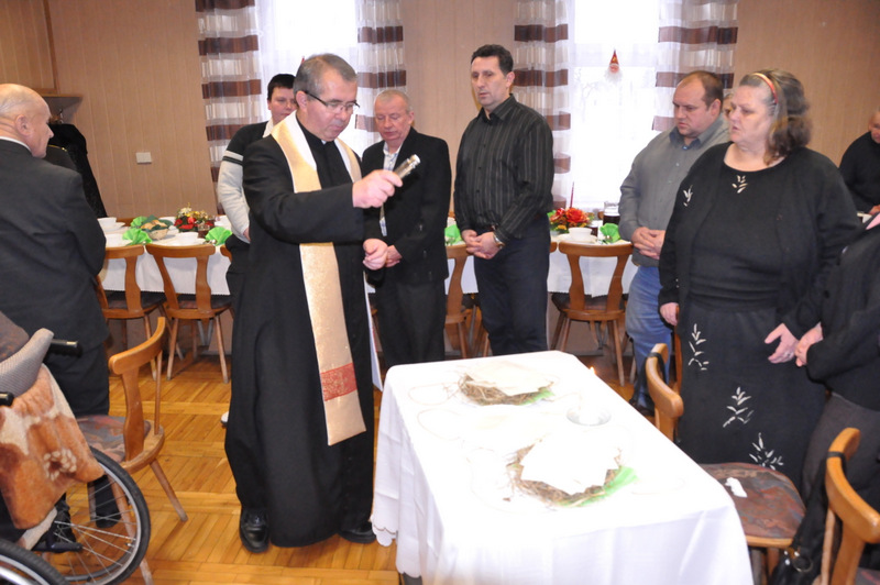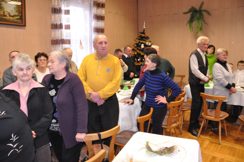 Uroczyste spotkanie rozpoczęło się wspólnym śpiewaniem kolęd przez uczestniczące w nim osoby. Wytworzyła się radosna, pełna wzajemnej życzliwości atmosfera. Uczestnicy w liczbie około 60 osób łamiąc się opłatkiem, składali sobie wzajemne życzenia. Na stół wigilijny trafiły tradycyjne potrawy wigilijne: barszcz z uszkami, kapusta z grochem, karp smażony, kompot z suszonych owoców oraz ciasta. Świeże ryby na wigilijny stół podarowało już tradycyjnie Nadleśnictwo w Dąbrowie Tarnowskiej. Organizatorzy składają serdeczne podziękowania za ten dar na ręce Nadleśniczego, Pana Zbigniewa Matuły, a panu Panu Krzysztofowi Krupa z Zakładu Przetwórstwa Pieczarek „KRISTER” za przekazanie pieczarek.