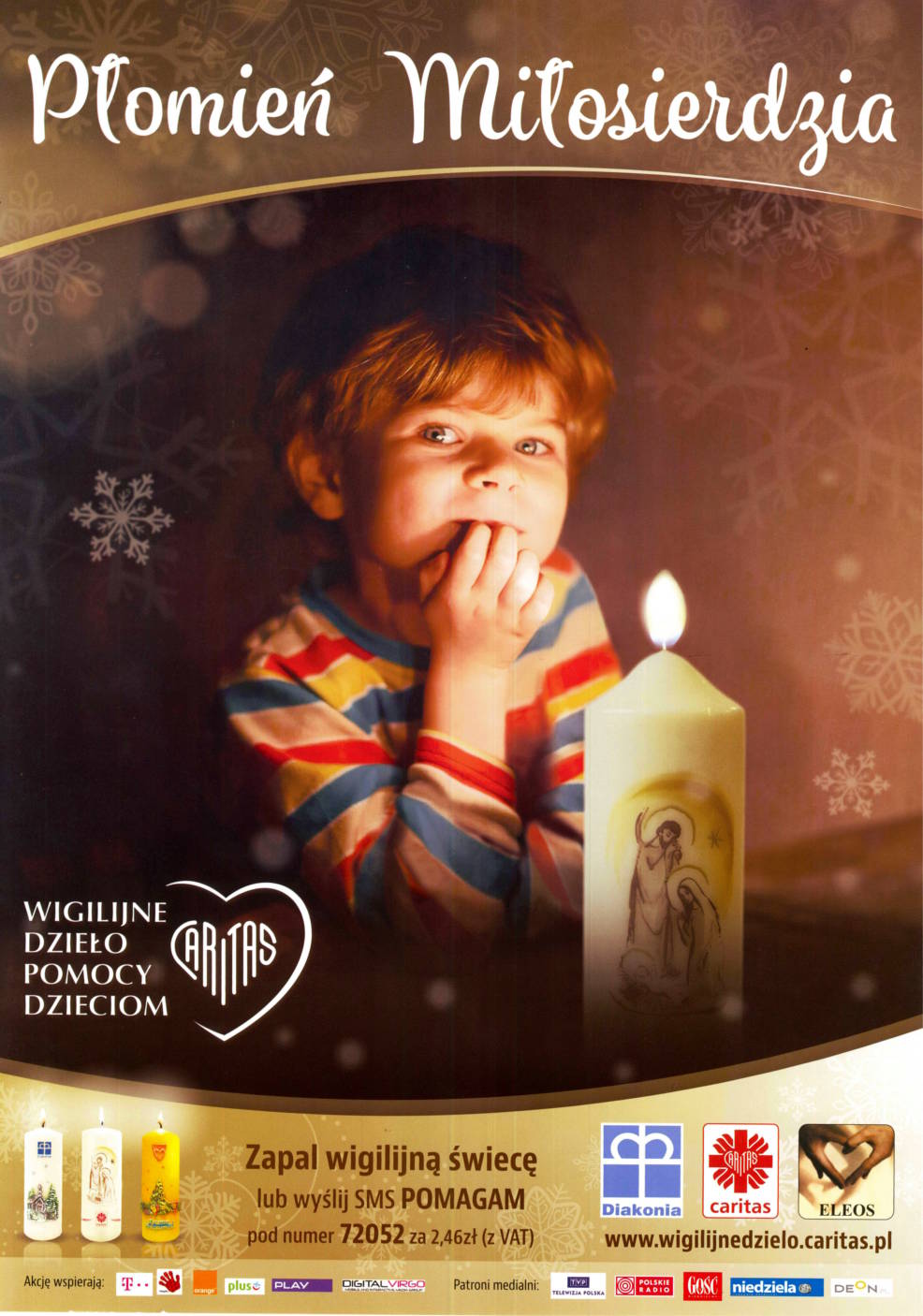 125 tys. małych świec i 7 tys. dużych będzie rozprowadzonych podczas Adwentu w parafiach diecezji tarnowskiej. Wspierając akcję „Wigilijne Dzieło Pomocy Dzieciom” można pomóc najmłodszym, którzy często pierwszy raz w życiu pojadą na wakacje i ferie. „Płomień Miłosierdzia” – takie hasło przyświeca tegorocznej akcji charytatywnej. „Hasło przedłuża nam Rok Miłosierdzia, który formalne się zakończył. Jak bowiem podkreśla papież Franciszek, czas miłosierdzia się nie kończy i gdy ta świeca zapłonie na wigilijnym stole możemy mieć świadomość, że zrobiliśmy coś dobrego, że okazaliśmy miłosierdzie wobec bliźniego. Dzięki temu płomieniowi rozpalą się też serca i twarze potrzebujących dzieci” – mówi ks. Ryszard Podstołowicz, dyrektor Caritas Diecezji Tarnowskiej.
