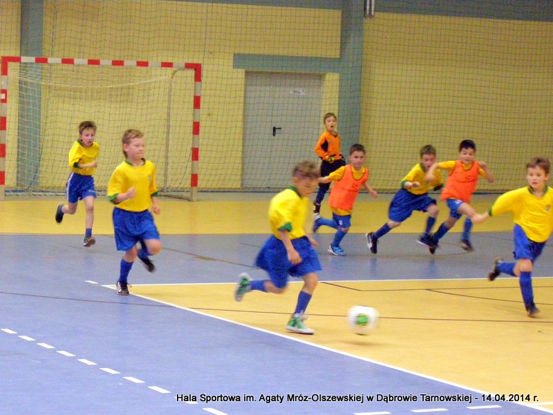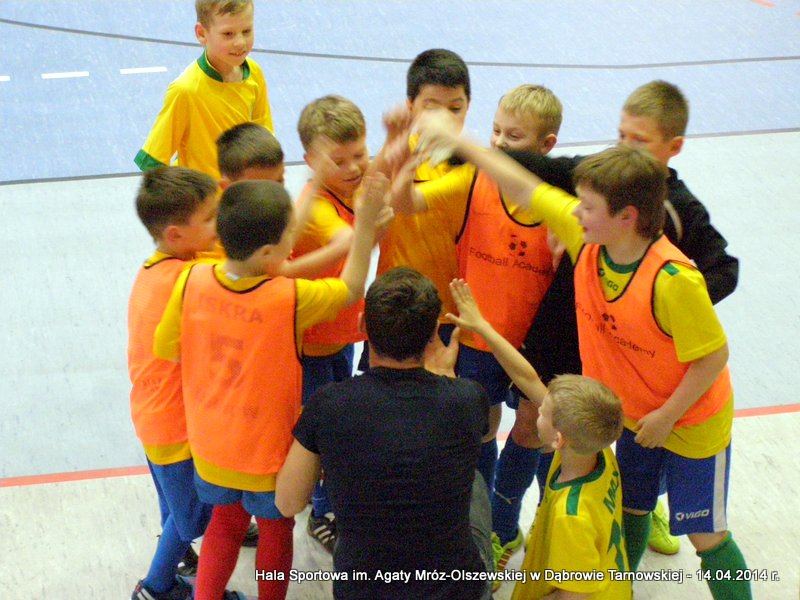 14 kwietnia rozgrywki rozpoczęli najmłodsi adepci piłki nożnej, grupa „Żaki” (7-8 lat). Niestety z uwagi na opady deszczu i kiepskie warunki atmosferyczne, mecze rozegrano na Hali Sportowej im. Agaty Mróz-Olszewskiej. I tym razem najlepiej zaprezentowała się drużyna Football Academy (grupa Lampard) wygrywając wszystkie mecze i całe zawody. Wyniki gier: Football Academy DT - LUKS Skrzyszów 3-0 Football Academy DT - ISKRA Tarnów 3-0 Football Academy DT - Football Academy DT II 8-0 ISKRA Tarnów - LUKS Skrzyszów 1-0 ISKRA Tarnów - FA DT II 3-0 LUKS Skrzyszów - FA DT II 1-0********************