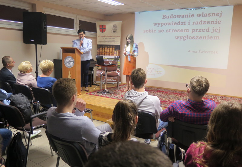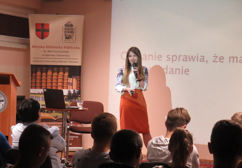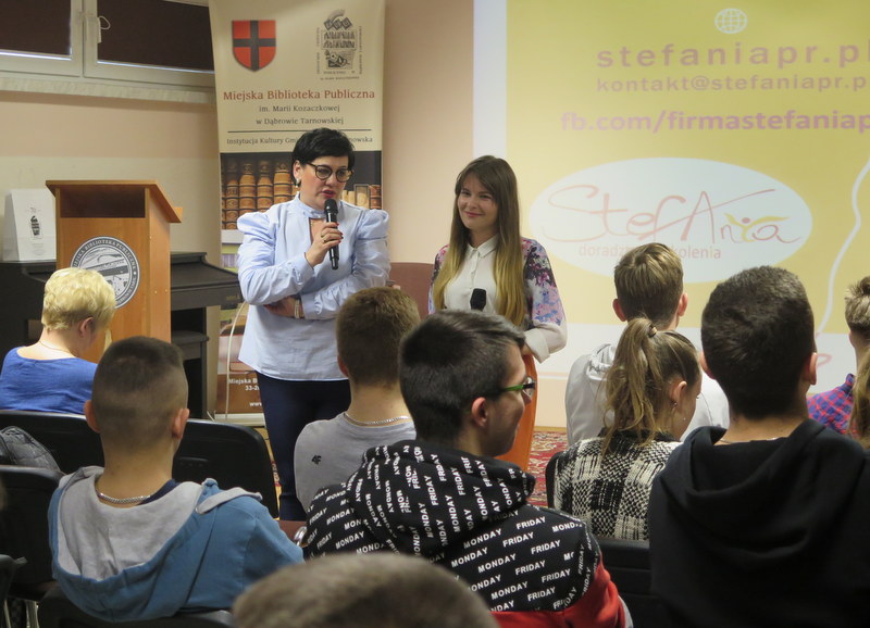 W piątek 15.03.2019 r. w Miejskiej Bibliotece Publicznej im. Marii Kozaczkowej w Dąbrowie Tarnowskiej odbył się wykład pt. „Budowanie własnej wypowiedzi i radzenie sobie ze stresem przed ich wygłoszeniem” przeprowadzony przez Annę Świerczek (StefAnia PR), zajmującą się szkoleniami i doradztwem w zakresie rozwoju osobistego, wizerunku i komunikacji interpersonalnej. Prelekcja dotyczyła przygotowania się do egzaminu dojrzałości, radzenia sobie ze stresem oraz sposobów motywowania się do uczenia. Młodzież usłyszała wiele cennych wskazówek w jaki sposób budować pewność siebie oraz płynnie się wypowiadać. Słuchaczami prelekcji byli uczniowie klas maturalnych Zespołu Szkół Ponadgimnazjalnych nr 1 oraz Zespołu Szkół Ponadgimnazjalnych nr 2 w Dąbrowie Tarnowskiej.