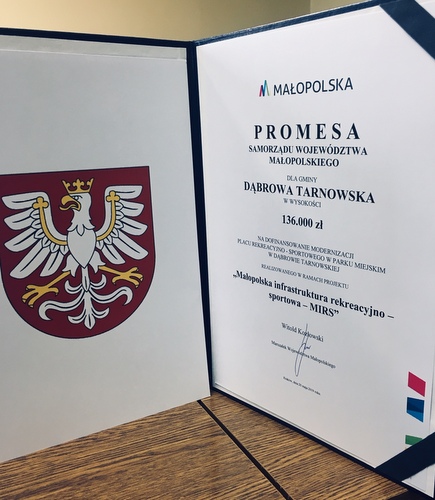 Dzięki uzyskanej dotacji istniejące boisko w Parku Miejskim będzie pokryte nawierzchnią poliuretanową. Zostaną uzupełnione częściowo urządzenia na placu zabaw oraz wykonane nowe ogrodzenie. Aktualnie trwa uzgadnianie realizacji tego zadania z konserwatorem zabytków.