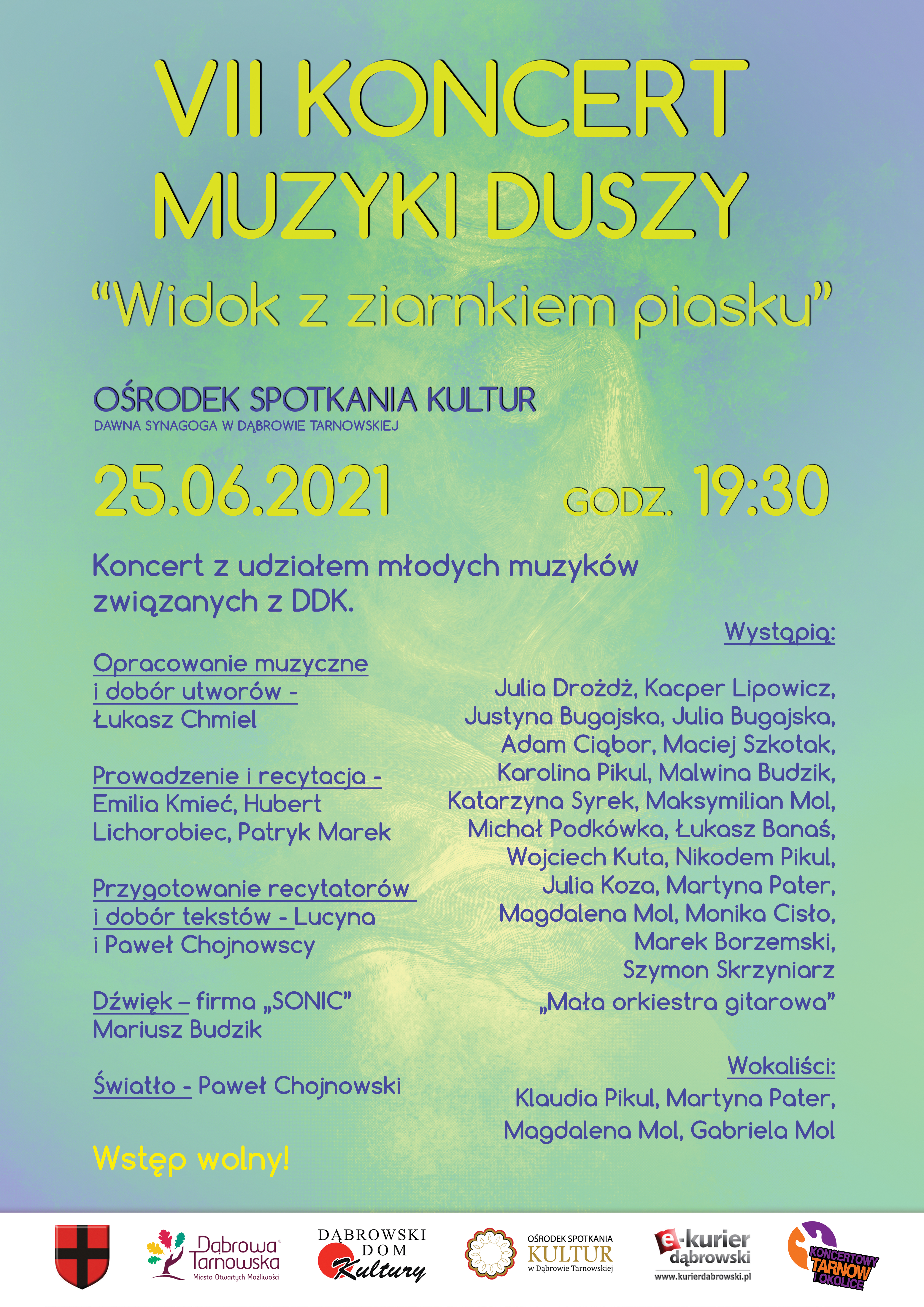 W 2021 r., po rocznej, pandemicznej pauzie młodym muzykom podczas Koncertu Muzyki Duszy towarzyszyć będzie poezja Wisławy Szymborskiej. Wydarzenie muzyczne pod tytułem: „Widok z ziarnkiem piasku” przygotowali: Łukasz Chmiel (dobór utworów muzycznych i ich opracowanie), Lucyna i Paweł Chojnowscy (przygotowanie recytatorów, światło), Mariusz Guzik (dźwięk). Imprezę prowadzić będą dziecięcy konferansjerzy a zarazem recytatorzy: Emilia Kmieć, Hubert Lichorobiec i Patryk Marek.