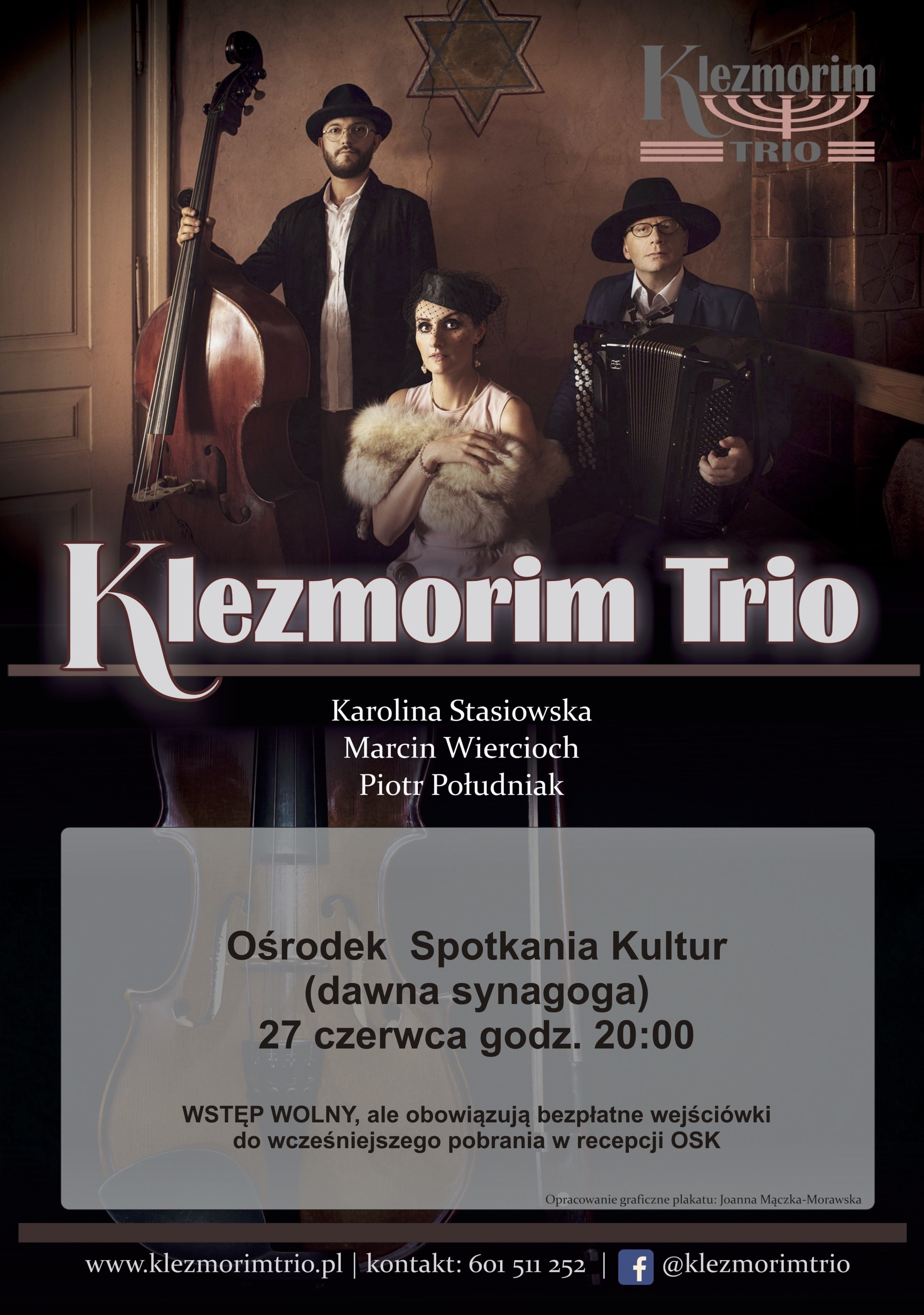 Wstęp na oba wydarzenia jest wolny. Ze względu na rygory sanitarne i obostrzenia dotyczące ograniczenia liczebnego widowni na koncert „Klezmorin Trio” obowiązują bezpłatne wejściówki, które należy pobrać w recepcji OSK (dostępne od 16 czerwca). Ich ilość jest ograniczona.
