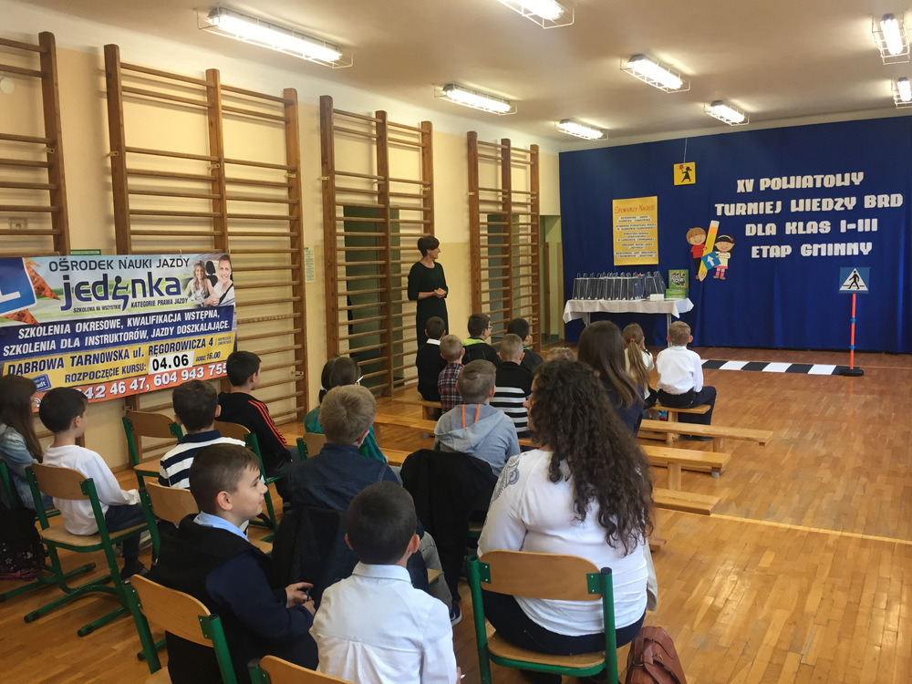 29 maja 2019 roku w Publicznej Szkole Podstawowej im. gen. Józefa Bema w Laskówce Chorąskiej odbył się etap gminny XV Turnieju Wiedzy o Bezpieczeństwie Ruchu Drogowego dla klas I-III „Wzorowo i bezpiecznie”, którego koordynatorem była pani Justyna Wrona. Do turnieju przystąpiło 6 szkół z gminy Dąbrowa Tarnowska. Tuż po godzinie 9:00 wszyscy uczestnicy konkursu wiedzy wraz z opiekunami i rodzicami zgromadzili się na sali gimnastycznej, gdzie zostali serdecznie przywitani przez panią Teresę Dąbrowę – dyrektora szkoły w Laskówce Chorąskiej. Po krótkim wstępie uczniowie udali się do sali lekcyjnej na piętrze, gdzie nastąpiło oficjalne otworzenie koperty z testem przygotowanym przez PSP nr 2 w Dąbrowie Tarnowskiej.