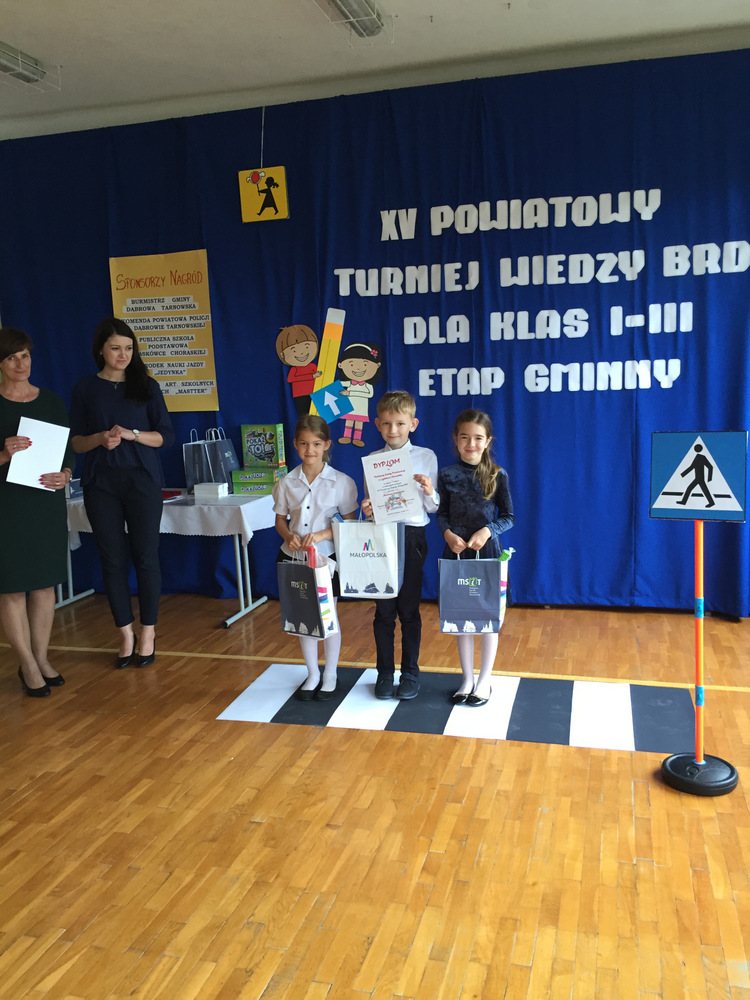 Podczas wręczania nagród swoją obecnością wszystkich uczestników zaszczycili reprezentanci z Komendy Powiatowej Policji w Dąbrowie Tarnowskiej, którzy podsumowując etap gminny przekazali uczniom cenne rady i wskazówki nt. bezpieczeństwa na drodze.