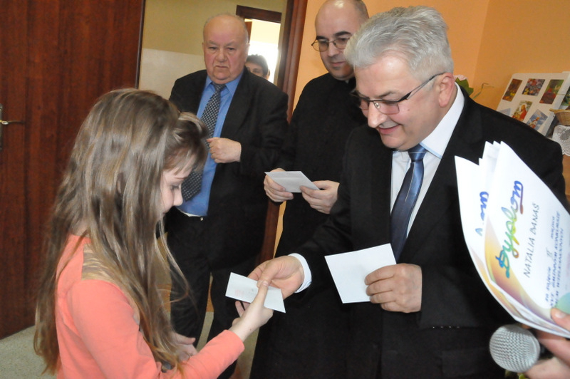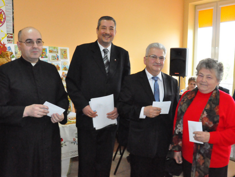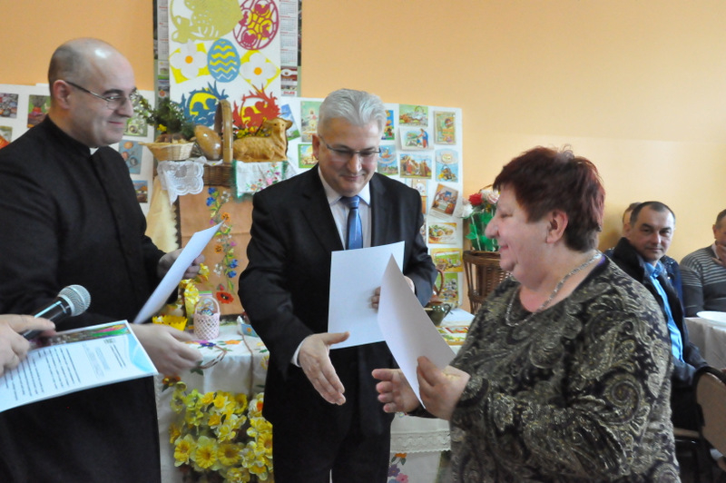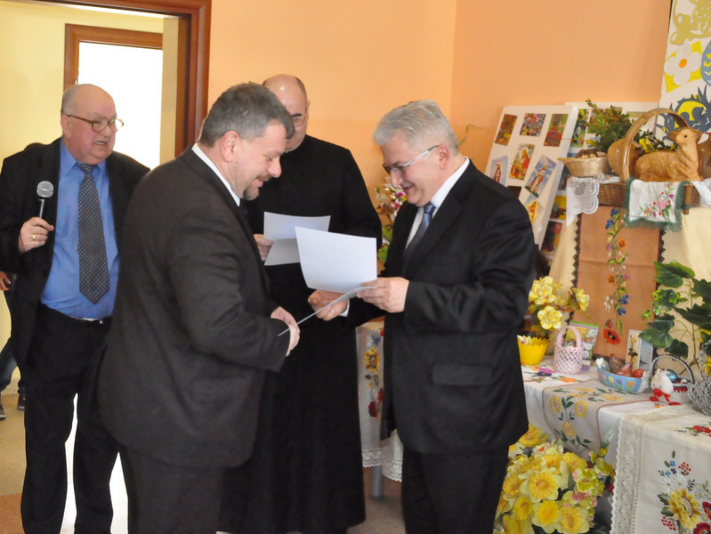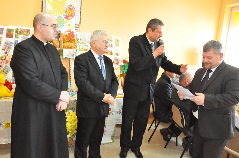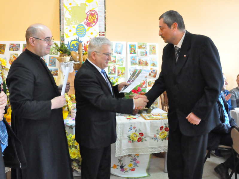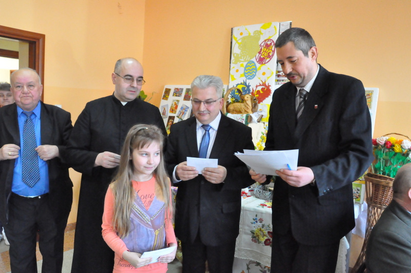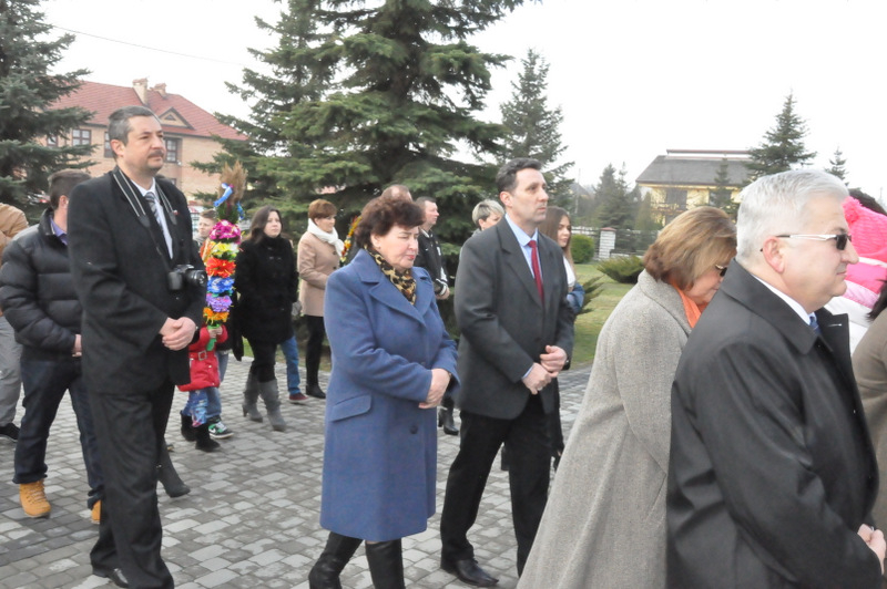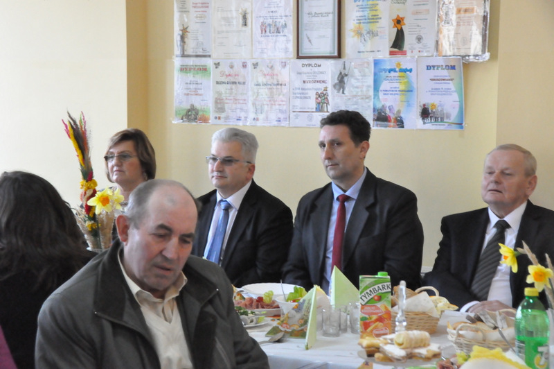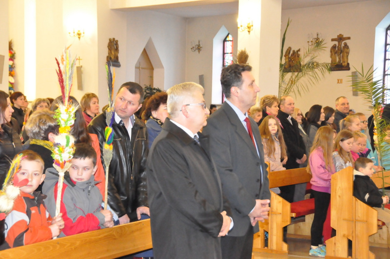 Wśród nich byli: Proboszcz Parafii w Gruszowie Wielkim ks. Józef Szczęśniak, Burmistrz Dąbrowy Tarnowskiej Krzysztof Kaczmarski, Dyrektor Dąbrowskiego Domu Kultury Paweł Chojnowski, Dyrektor Powiatowego Urzędu Pracy Stanisław Początek, Z-ca Dyrektora MGOPS Halina Sarat, Starszy Specjalista Pracy Socjalnej Marek Stafii, Dyrektor Zespołu Szkoły Podstawowej i Gimnazjum Marcin Jarzwiec, Prezes Stowarzyszenia „Civitas Christiana” Edward Urbańczyk, sołtys wsi Gruszów Mały Barbara Chmiel i radna powiatu dąbrowskiego Anna Witowska. Ważną częścią uroczystości było wręczenie nagród oraz dyplomów za długoletnie wspieranie Gminnego Konkursu Palm Wielkanocnych. Uroczystego wręczenia dokonali Burmistrz Krzysztof Kaczmarski, Dyrektor DDK Paweł Chojnowski, ks. proboszcz Józef Szczęśniak. Edward Urbańczyk z Civitas Christiana, Nagrody otrzymali: I miejsce ex aequo – Michał Moździerz (Szarwark), Szkoła Podstawowa w Szarwarku, klasa II (PSP w Gruszowie Wielkim), Publiczne Gimnazjum nr 3 w Gruszowie Wielkim (po 300 zł każda nagroda), II miejsce ex aequo – Paweł Chłopek, Dawid Fijał (obaj – Szarwark), Natalia Banaś (Gruszów W.), PSP w Gruszowie W. (po 200 zł każda nagroda), , III miejsce ex aequo – Milena Moździerz, Klaudia Żurawska (obie – Szarwark), Karolina Kruk, Patrycja Kijak (obie – Gruszów W., po 100 zł każda nagroda), wyróżnienie – Nikodem Żurawski (Szarwark – 50 zł).
