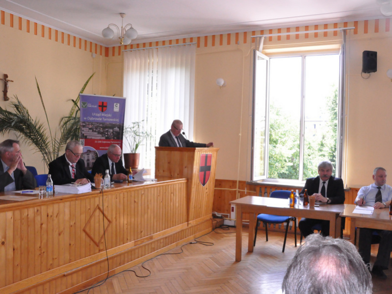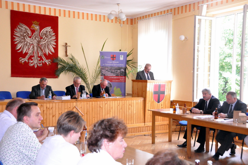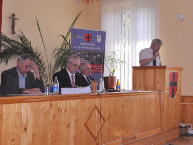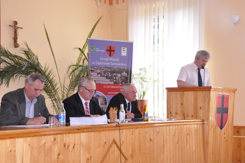 Po przyjęciu porządku obrad i protokołu z ostatniej sesji Burmistrz Dąbrowy Tarnowskiej Stanisław Początek zapoznał radnych ze sprawozdaniem z działalności międzysesyjnej. Burmistrz udzielił także  szerokiej informacji na temat szkód  wyrządzonych przez ubiegłotygodniową powódź. Poinformował także   o podjętych przez tut. Urząd  działaniach zmierzających do udzielenia pomocy poszkodowanym oraz o wniosku skierowanym do Wojewódzkiego Inspektoratu Nadzoru Budowlanego w  Krakowie o przeprowadzenie kontroli wywiązywania się z obowiązków administratora rzeki Breń i Smęgorzówka przez Małopolski Zarząd Melioracji i Urządzeń Wodnych. Wniosek obejmuje także sprawdzenie prawidłowości eksploatacji jazu piętrzącego wodę na rzece Breń w miejscowości Swarzów gm. Olesno. Również sprawy dotyczące  ostatniej powodzi i podtopień, w szczególności   stanu urządzeń  melioracyjnych i  niedrożnych rowów  były tematem wiodącym  interpelacji  i zapytań  radnych.  Ponadto, radni korzystając z obecności Starosty Dąbrowskiego Tadeusza Kwiatkowskiego uzyskali informacje na temat realizacji inwestycji drogowych  realizowanych przez Powiat  w  Gminie Dąbrowa  Tarnowska.  Burmistrz poinformował Radę, że skierował prośbę do Ministra Sławomira Nowaka w sprawie podjęcia decyzji o terminie rozpoczęcia budowy obwodnicy Dąbrowy Tarnowskiej . Treść tej prośby otrzymało też 20 Posłów z Małopolski z wszystkich klubów poselskich. W końcowej części obrad radni zapoznali się  z problemami, zawartymi w pismach, które wpłynęły w ostatnim czasie do tut. Rady Miejskiej od różnych instytucji oraz od mieszkańców.