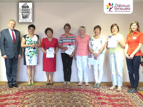 Część osób korzystała z własnych laptopów. Kurs zawierał treści teoretyczne jak i ćwiczenia praktyczne. Celem zajęć było oswojenie się z komputerem oraz nabycie podstawowych umiejętności jego obsługi. Omawiane tematy obejmowały: elementy systemu komputerowego, system operacyjny, działania na folderach i plikach, Pakiet Microsoft Office, Internet i poruszanie się po sieci, pocztę elektroniczną, komunikator Skype. Zakończenie kursu było okazją do powspominania zajęć, które przebiegały w miłej i przyjaznej atmosferze. Czas spędzony wspólnie w bibliotece pozwolił na zdobycie nowej wiedzy i umiejętności oraz zawarcie znajomości. Pamiątkowe dyplomy ukończenia kursu wręczył uczestniczkom zastępca burmistrza Dąbrowy Tarnowskiej Stanisław Ryczek wraz z dyrektor MBP Jadwigą Kusior.