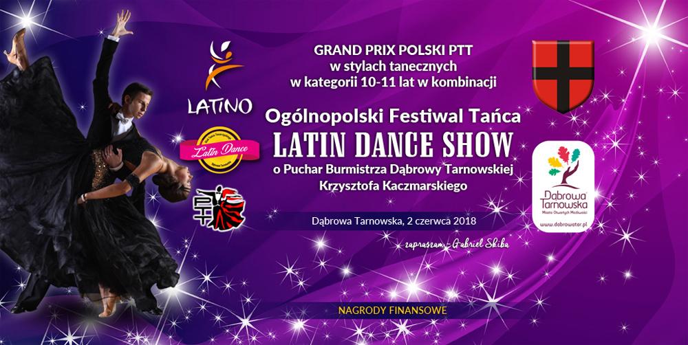 Latin Dance Show 2 06 2018 Zapraszamy na Grand Prix Polski PTT oraz Ogólnopolski Festiwal Tańca Latin Dance Show o Puchar Burmistrza Dąbrowy Tarnowskiej Krzysztofa Kaczmarskiego 2018