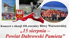 Stowarzyszenie Samorządów Powiatu Dąbrowskiego serdecznie zaprasza mieszkańców Powiatu Dąbrowskiego oraz gości do udziału w obchodach 101. rocznicy Bitwy Warszawskiej pn. "15 sierpnia - Powiat Dąbrowski Pamięta", które odbędą się w niedzielę 15 sierpnia 2021 roku w Dąbrowie Tarnowskiej. Uroczystość rozpocznie się o godzinie 16.00 Mszą świętą w kościele parafialnym NMP Szkaplerznej w Dąbrowie Tarnowskiej za rolników, w podziękowaniu za udane plony, z intencji starostów, burmistrzów i wójtów z terenu powiatu dąbrowskiego.