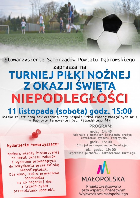 Podczas Turnieju wszyscy kibice i zawodnicy będą mogli wziąć udział w konkursie ogólnej wiedzy historycznej na temat okresu zaborów i wydarzeń prowadzących do odzyskania przez Polskę niepodległości. Dla osób, które prawidłowo odpowiedzą na co najmniej dwa z trzech pytań przewidziano drobne upominki.