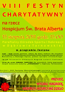 W dniu 15 sierpnia 2011 roku, Wspólnota Ludzi Hospicjum i Domu Pomocy Społecznej w Dąbrowie Tarnowskiej  organizuje VIII Wielki Festyn Charytatywny. Tegoroczny dochód z Festynu zostanie przeznaczony na zakup podnośnika hydraulicznego dla chorych, jak również na bieżącą działalność  Placówek.