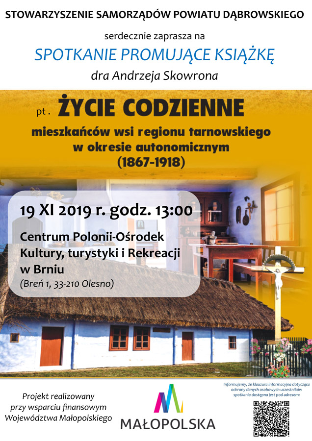 Stowarzyszenie Samorządów Powiatu Dąbrowskiego serdecznie zaprasza na uroczyste spotkanie promujące książkę dra Andrzeja Skowrona „Życie codziennie regionu tarnowskiego w okresie autonomicznym (1867-1918)".