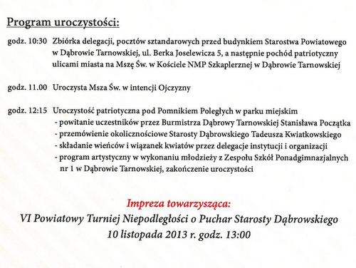 Jednocześnie zwracamy się z apelem, aby uczcili Państwo Święto Niepodległości poprzez wywieszenie na swoich posesjach flag państwowych. Gest ten będzie wyrazem szacunku dla walczących o wolną Polskę oraz wyrazem czci dla tych wszystkich, którzy za wolność i niepodległość oddali życie.