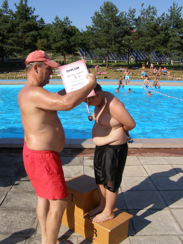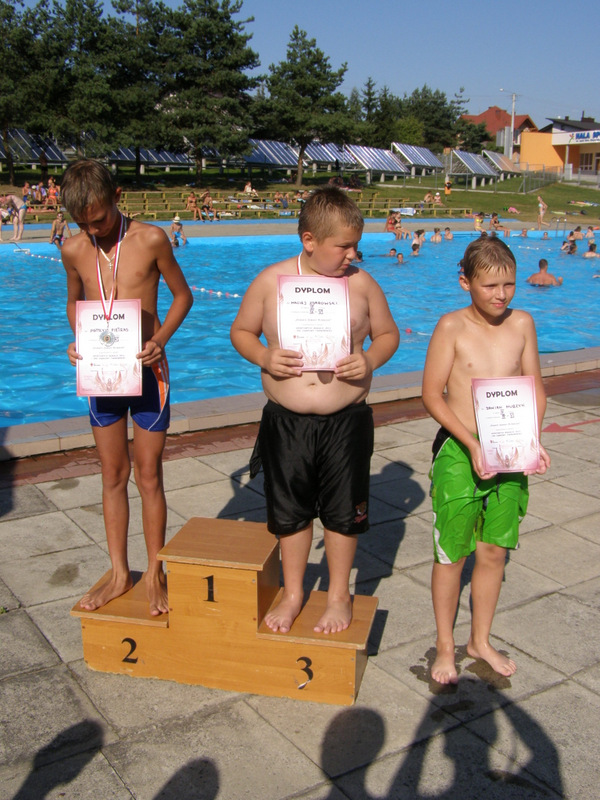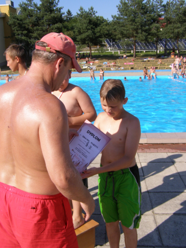 Uczestnikom zmagań na terenie basenu odkrytego medale i pamiątkowe dyplomy wręczali w imieniu Burmistrza Dąbrowy Tarnowskiej, Witold Reczek - Kierownik Referatu Kultury Fizycznej i Sportu Urzędu Miejskiego oraz Jacek Michoń - sędzia główny zawodów.
